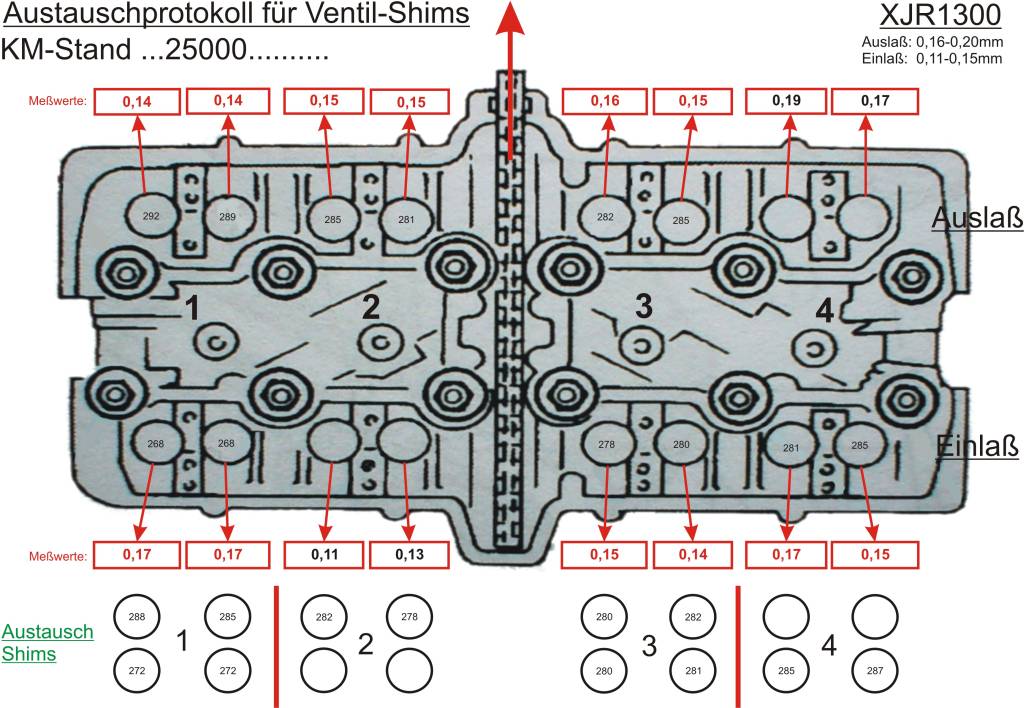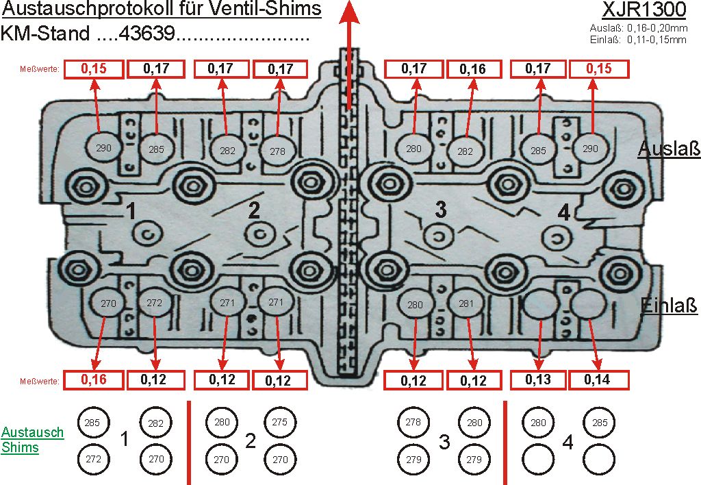 Alle ermittelten Meßwerte und die Shims - Nummern können in das von mir erstellte Austauschprotokoll notiert werden.